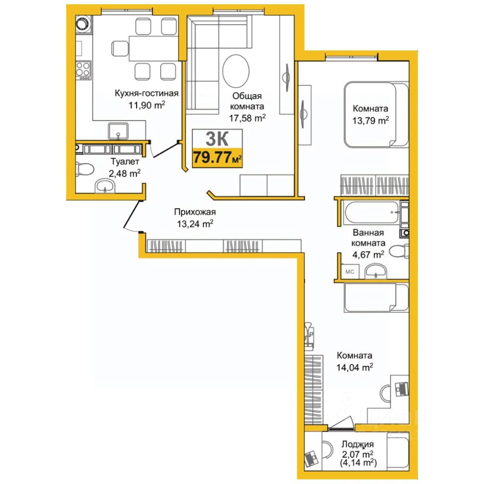 Продается 3-комн. квартира с предчистовой отделкой в ЖМ ''Город Мира'' на 8 этаже. Общая площадь: 79.77 кв.м. Высота потолков 2.7 м.