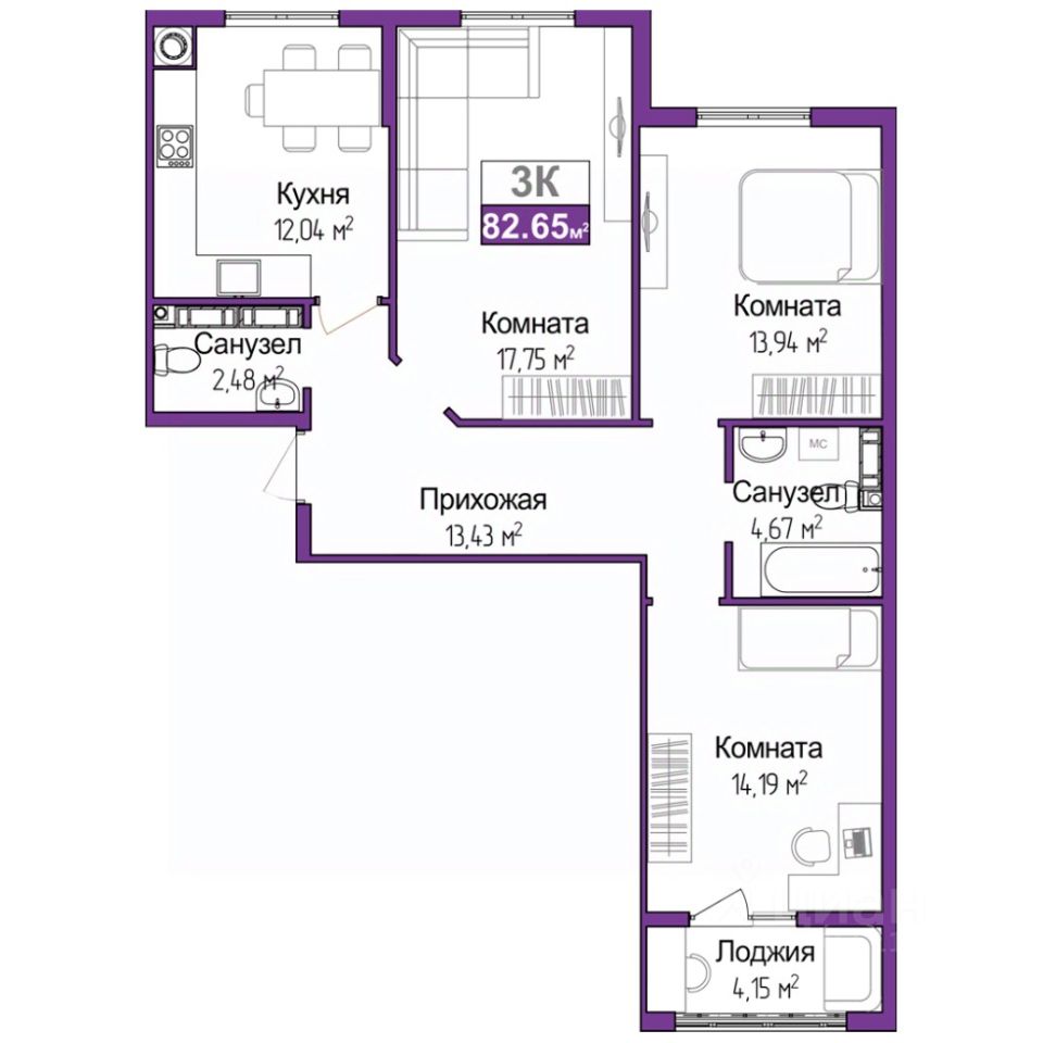 Общая площадь80,57 м2