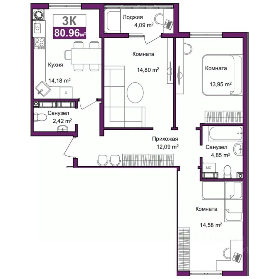 3-комн. квартира с предчистовой отделкой в ЖМ ''Город Мира'' на 2 этаже. Общая площадь: 77.5 кв.м. Высота потолков 2.7 м.