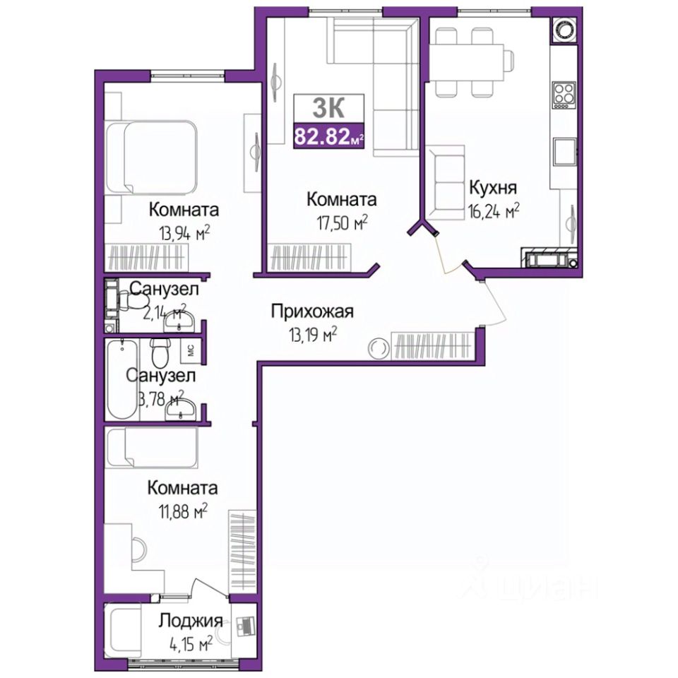 Общая площадь80,74 м2