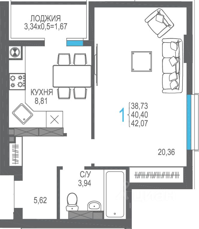 продам 1-к, Багликова, 27/415 986 600 ₽