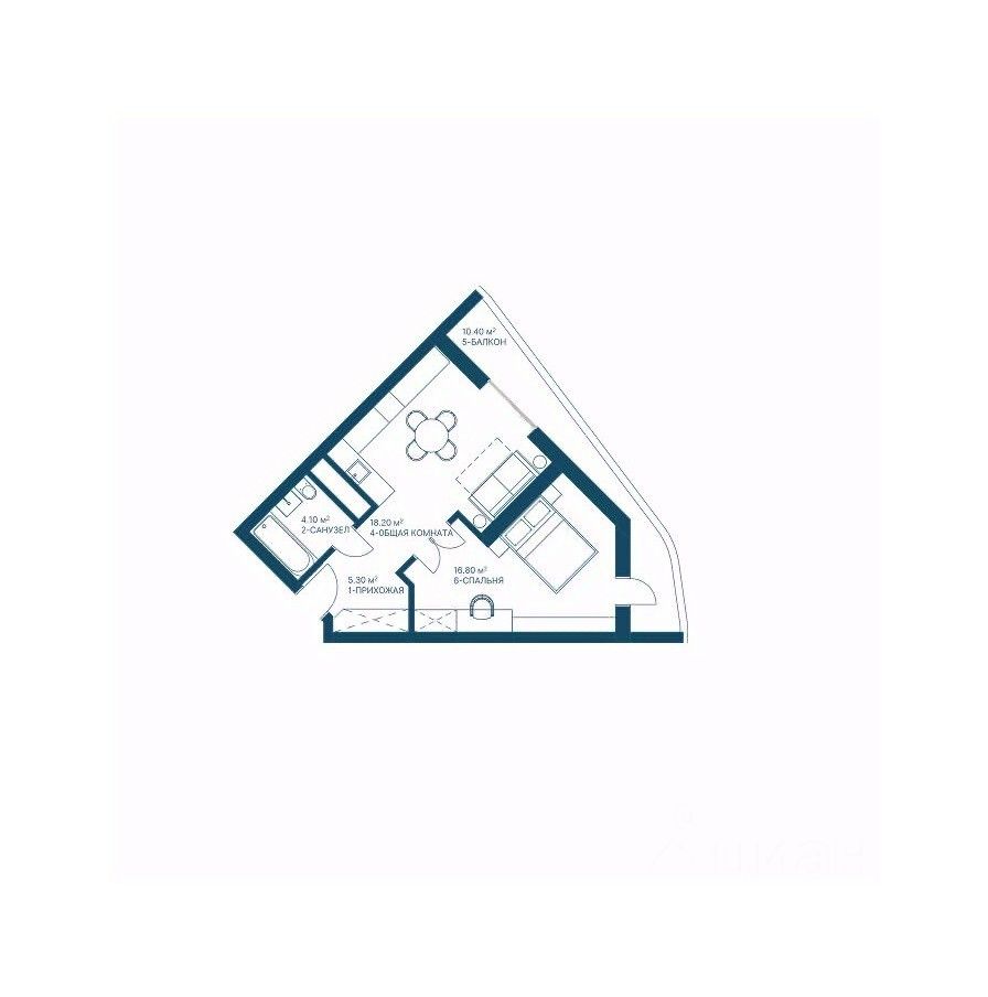 Общая площадь54,8 м2