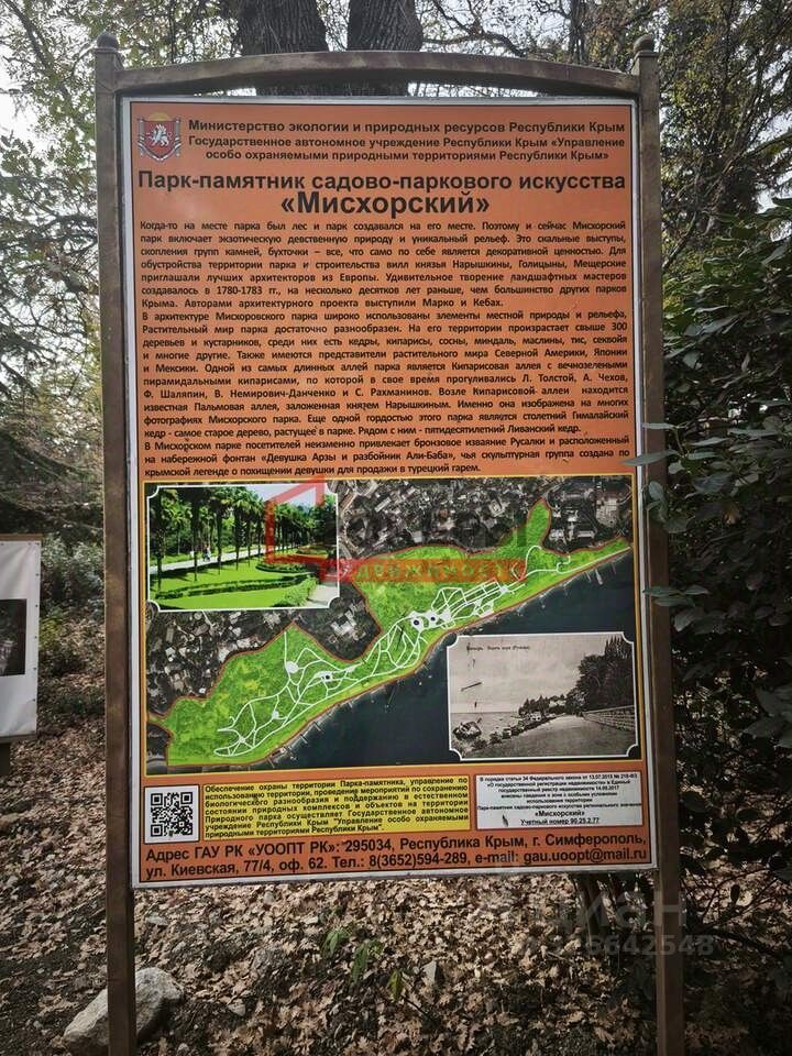 Объект 8600. Продается земельный участок 12 соток в г. Ялта, пгт. Кореиз — уникальнаялокация в видовом месте! Месторасположение: Участок находится в живописном районе рядом с Мисхорским парком, вэкологически чистой и престижной зоне. Отличное место для реализации жилого илитуристического проекта. Площадь: 12 соток.Размеры около 40*33 м. Назначение: Земля подиндивидуальное жилищное строительство (ИЖС). Возможна реализация как жилыхдомов, так и коммерческих объектов. Преимущества: Уникальная природнаясреда и виды на море и горы, Вблизи знаменитогоМисхорского парка и природных достопримечательностей. Уникальное место сживописными аллеями, редкими растениями и панорамными видами на море и горы.