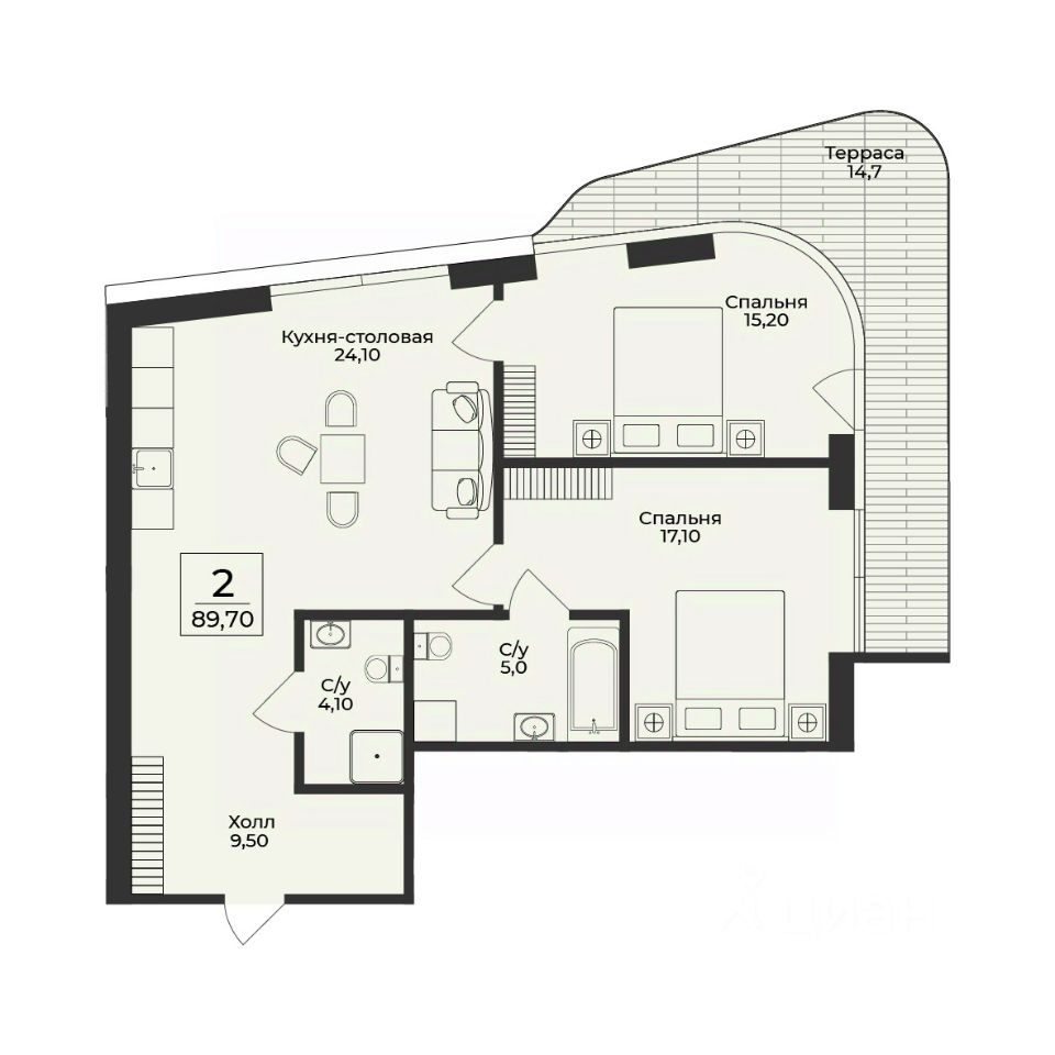 Продаётся 2-комнатная квартира в строящемся доме (Корпус 3), срок сдачи: III-кв. 2028, общей площадью 89.7 кв.м., на 4 этаже. Премиальный жилой комплекс ''Нега'' возводится в Профессорском уголке неподалёку от набережной, где снимался фильм ''Кавказская пленница''.