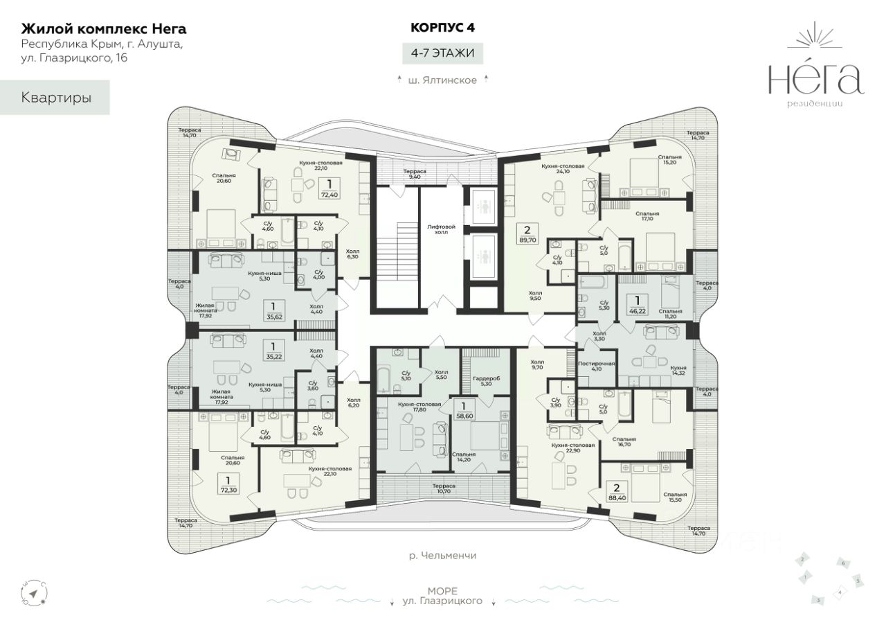 Продаётся студия в строящемся доме (Корпус 4), срок сдачи: III-кв. 2028, общей площадью 35.22 кв.м., на 4 этаже. Премиальный жилой комплекс ''Нега'' возводится в Профессорском уголке неподалёку от набережной, где снимался фильм ''Кавказская пленница''.