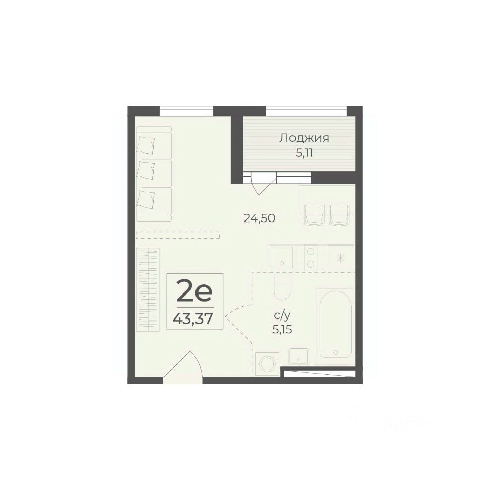 Общая площадь43,37 м2