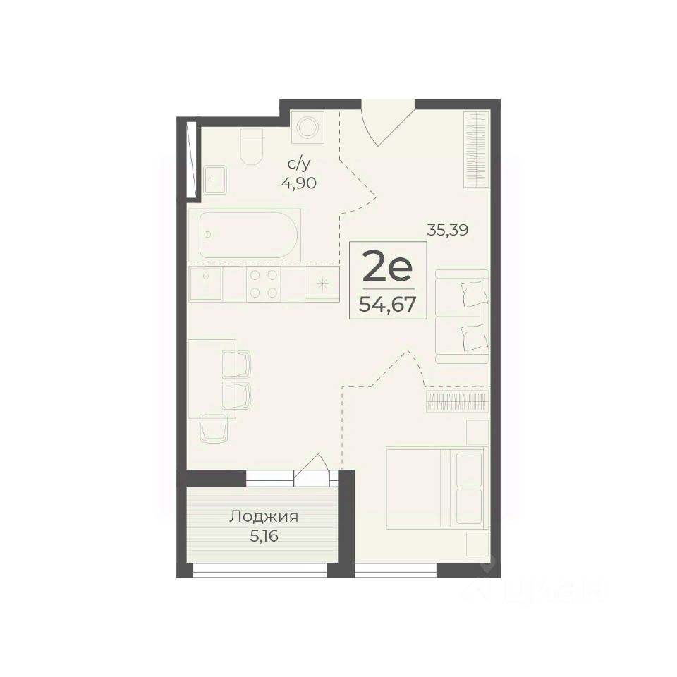 Общая площадь54,67 м2