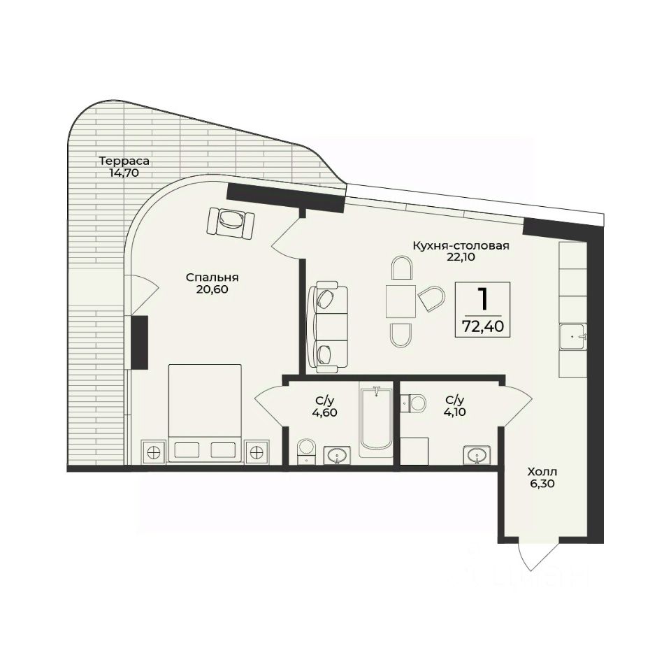 Продаётся 2-комнатная квартира в строящемся доме (Корпус 4), срок сдачи: III-кв. 2028, общей площадью 72.4 кв.м., на 3 этаже. Премиальный жилой комплекс ''Нега'' возводится в Профессорском уголке неподалёку от набережной, где снимался фильм ''Кавказская пленница''.