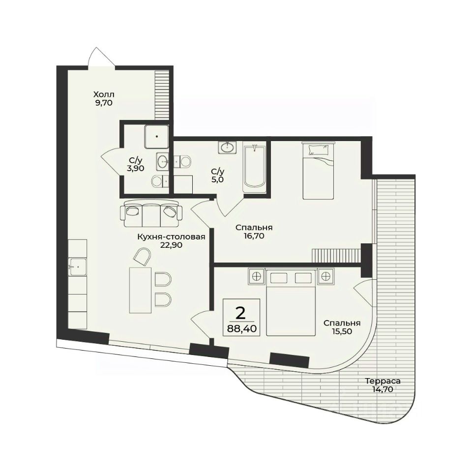 Продаётся 2-комнатная квартира в строящемся доме (Корпус 4), срок сдачи: III-кв. 2028, общей площадью 88.4 кв.м., на 6 этаже. Премиальный жилой комплекс ''Нега'' возводится в Профессорском уголке неподалёку от набережной, где снимался фильм ''Кавказская пленница''.