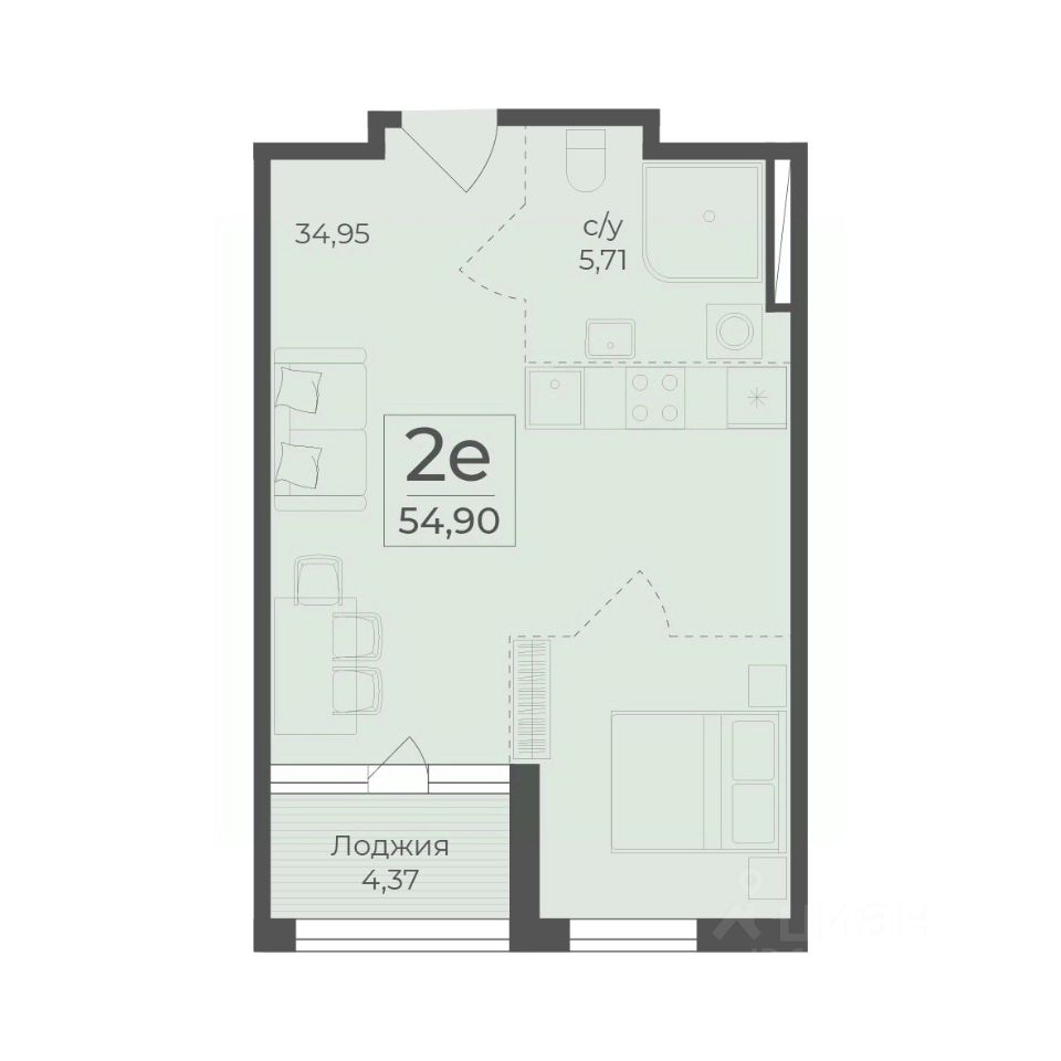 Общая площадь54,9 м2