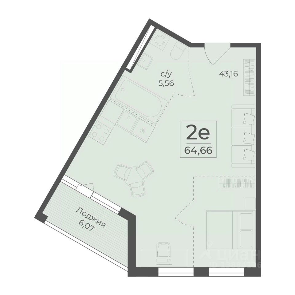 Общая площадь64,66 м2