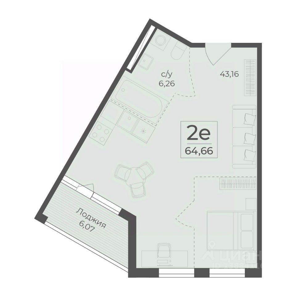 Общая площадь64,66 м2