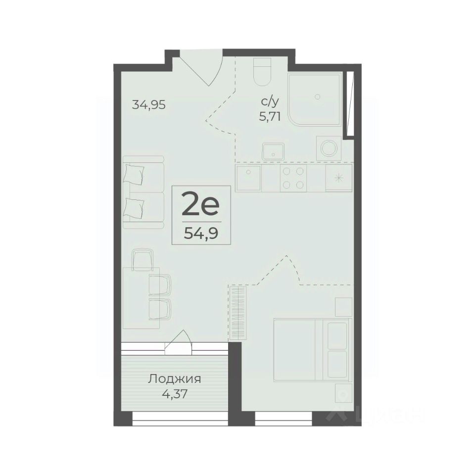 Общая площадь54,9 м2