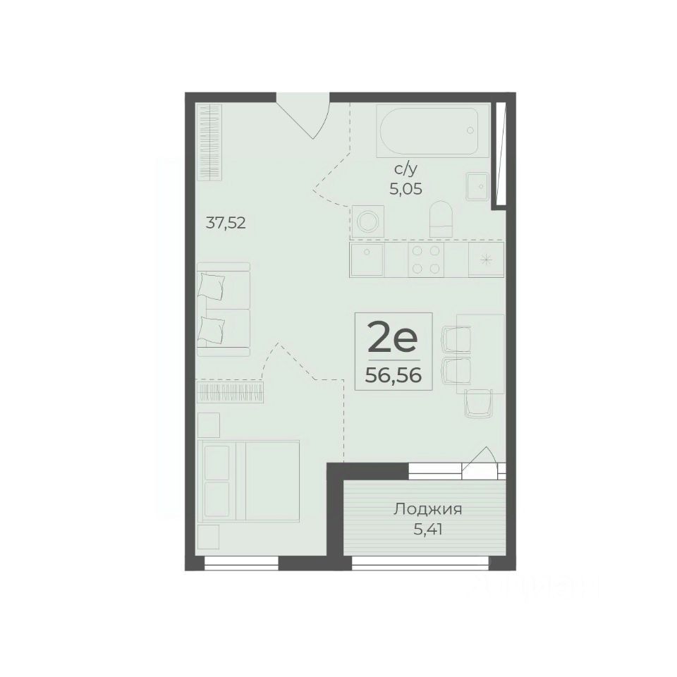 Общая площадь56,56 м2