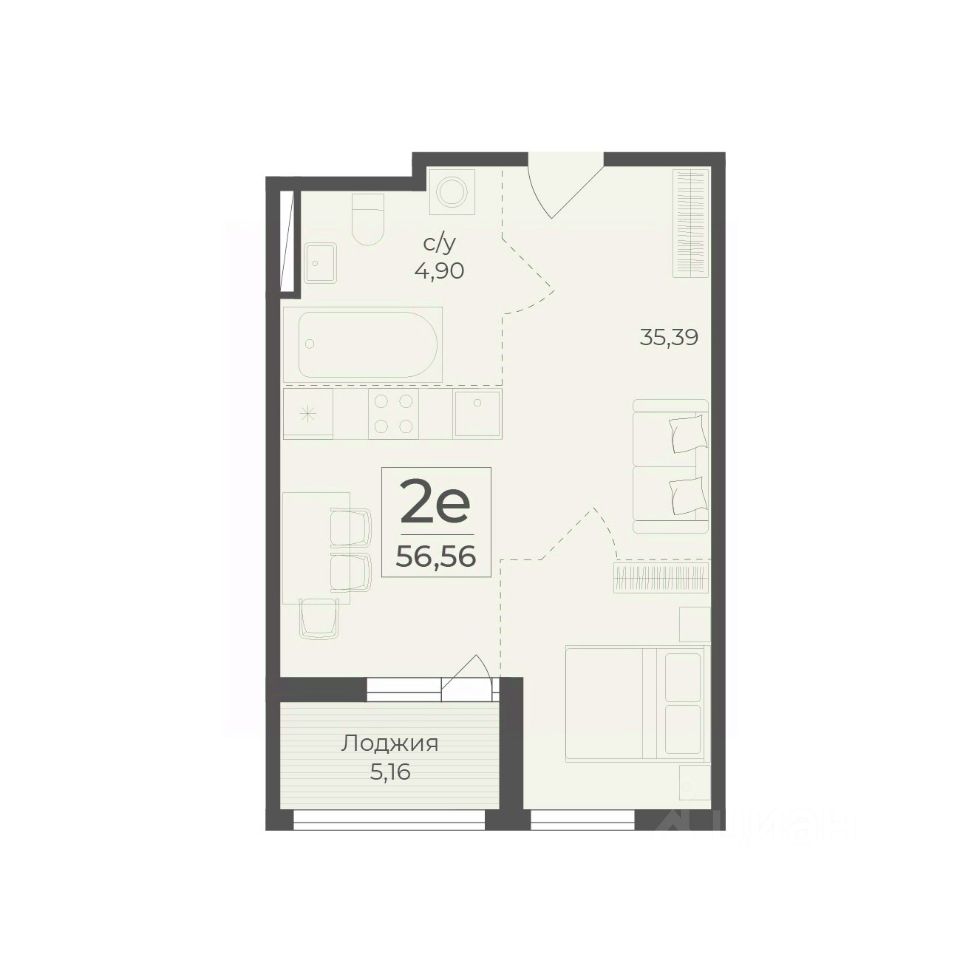 Общая площадь56,56 м2