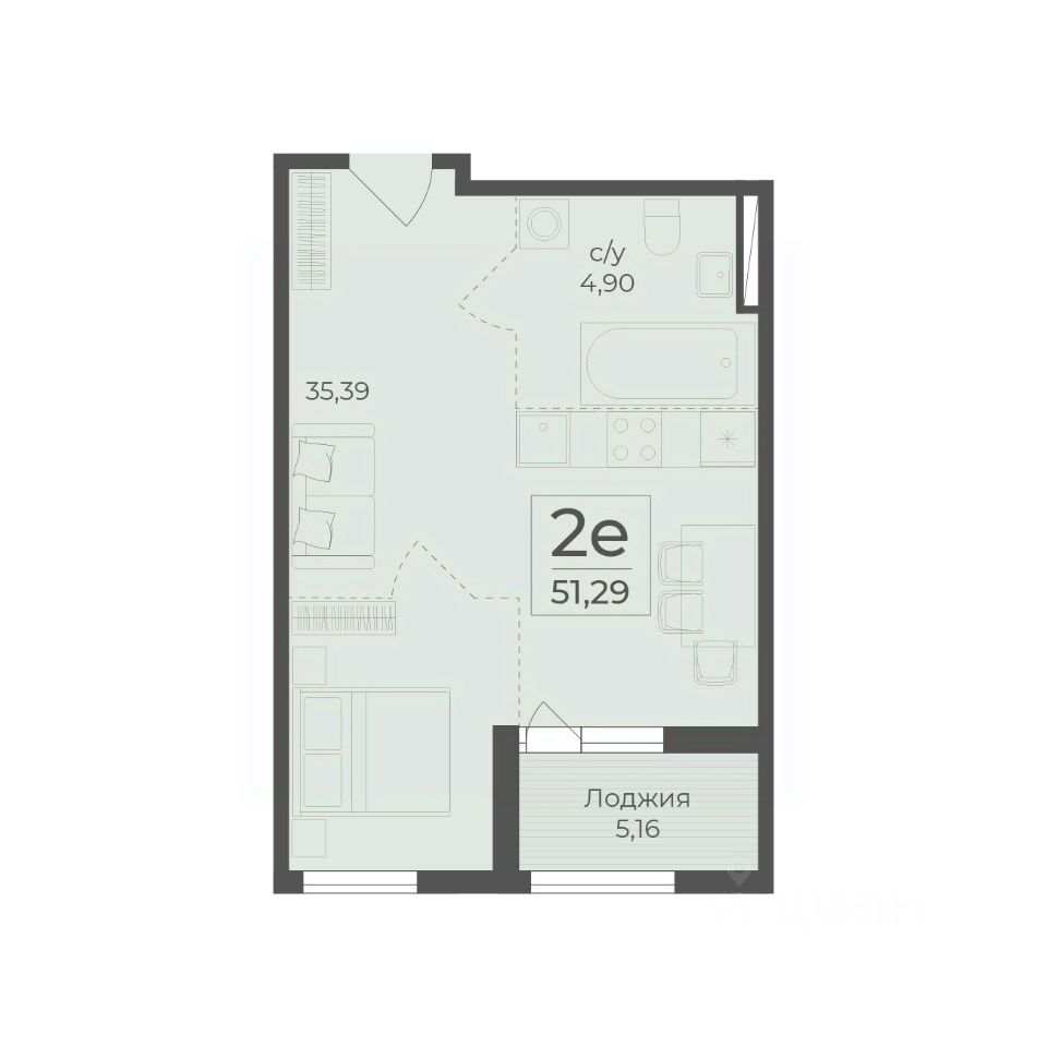 Общая площадь51,29 м2