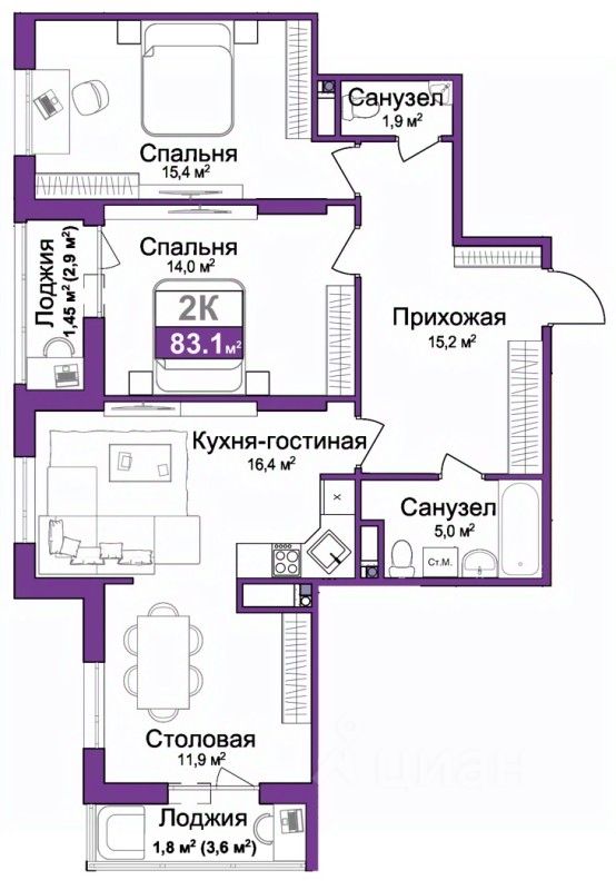 3-комн. квартира с европланировкой и предчистовой отделкой в ЖМ ''Город Мира'' на 2 этаже. Общая площадь: 83.1 кв.м., жилая: 41.3 кв.м., общая площадь гостиной-столовой с кухонной зоной: 28.3 кв.м. Европланировка, зона гостиной комнаты объединена с кухней. Квартира угловая, идеально подойдет любителям тишины и панорамных видов. В квартире один балкон и одна лоджия, один совмещенный и один раздельный санузел. Высота потолков 2.7 м.