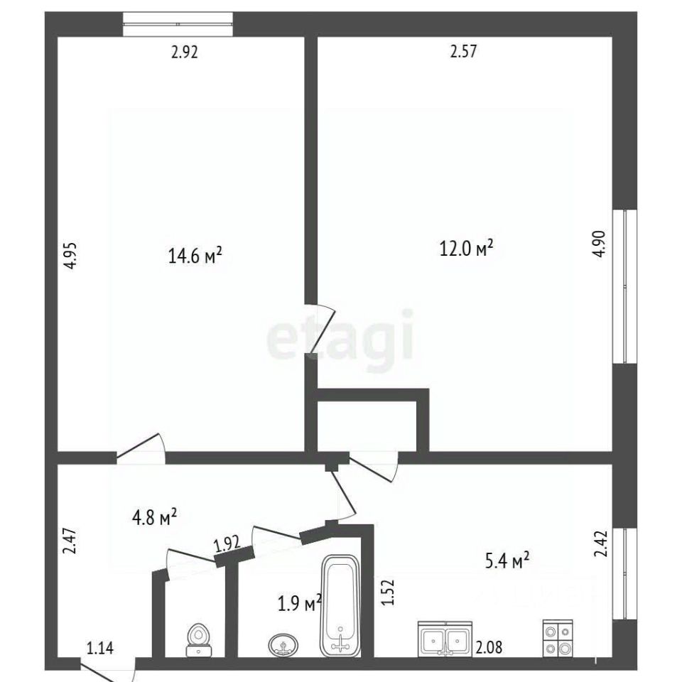 Продается двухкомнатная квартира в Евпатории общей площадью 40.1м².