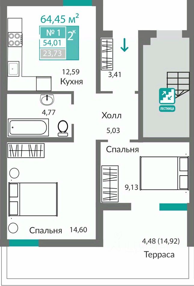 Продаётся 2-комнатная квартира в строящемся доме (9 этап (Секция Б9.2)), срок сдачи: I-кв. 2027, общей площадью 54.01 кв.м., на 1 этаже. ОТКРЫВАЕМ НОВЫЕ ГОРИЗОНТЫ
