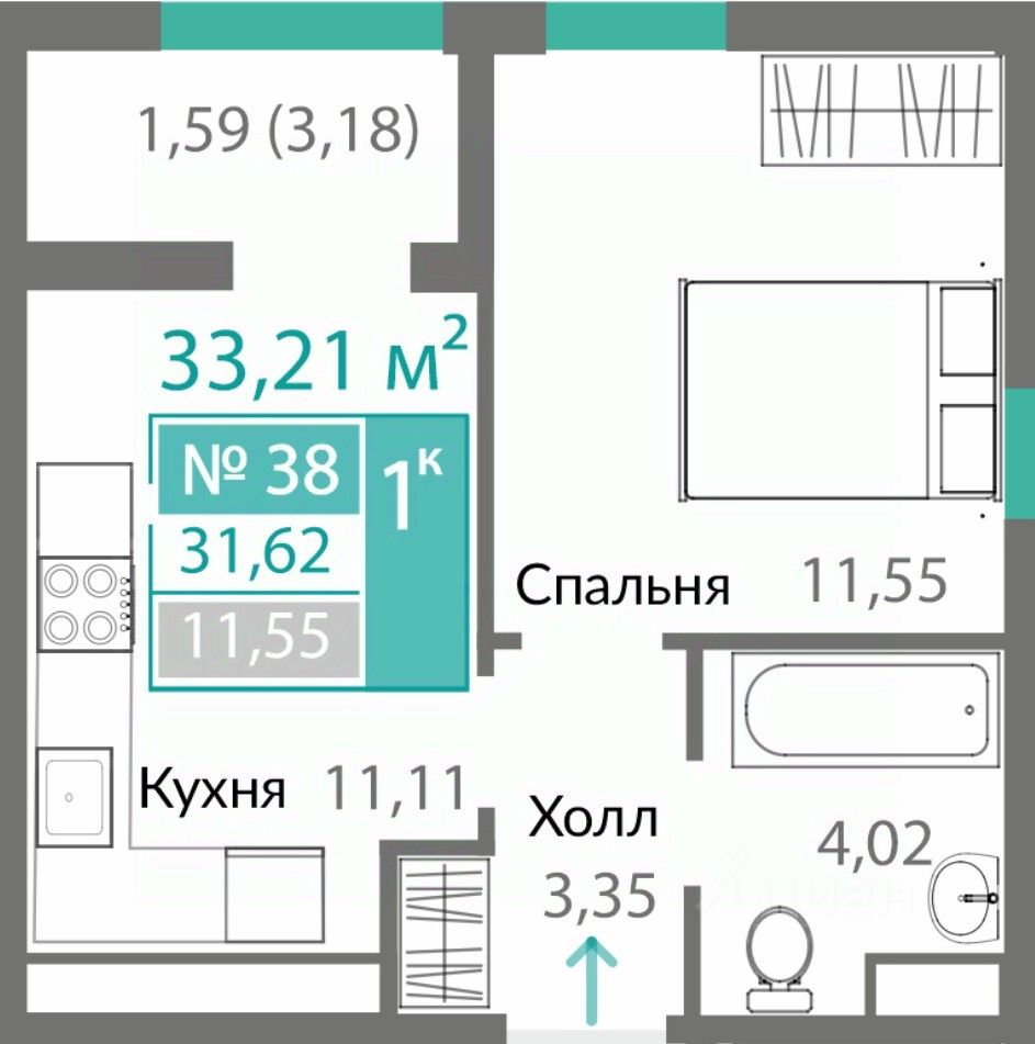 Продаётся 1-комнатная квартира в строящемся доме (9 этап (Секция Б9.2)), срок сдачи: I-кв. 2027, общей площадью 31.62 кв.м., на 5 этаже. ОТКРЫВАЕМ НОВЫЕ ГОРИЗОНТЫ