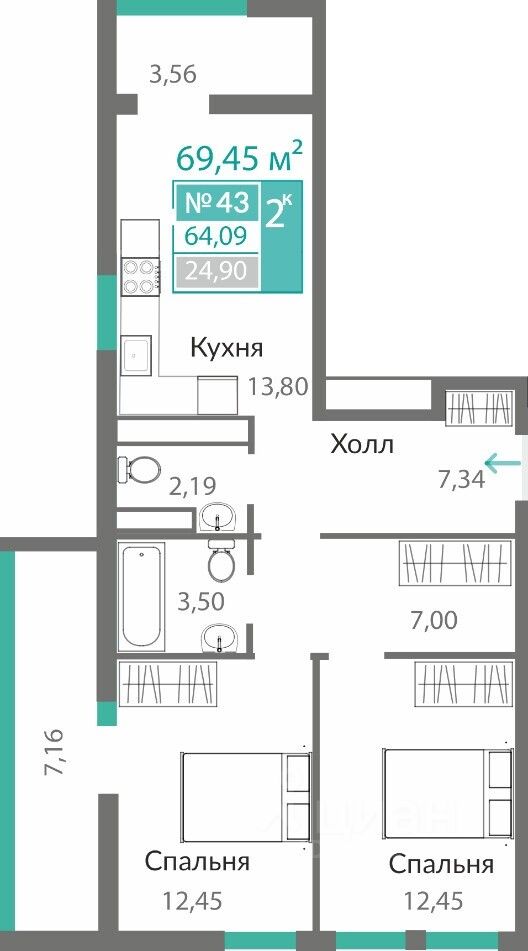 Продаётся 2-комнатная квартира в строящемся доме (9 этап (Секция Б9.2)), срок сдачи: I-кв. 2027, общей площадью 64.09 кв.м., на 7 этаже. ОТКРЫВАЕМ НОВЫЕ ГОРИЗОНТЫ