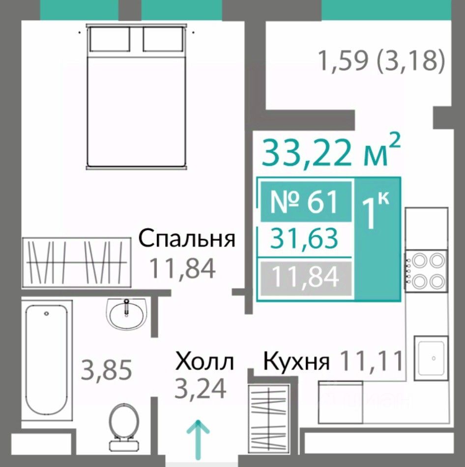 Продаётся 1-комнатная квартира в строящемся доме (9 этап (Секция Б9.2)), срок сдачи: I-кв. 2027, общей площадью 31.63 кв.м., на 8 этаже. ОТКРЫВАЕМ НОВЫЕ ГОРИЗОНТЫ