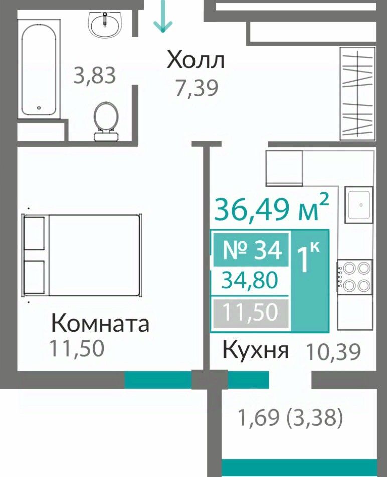 Продаётся 1-комнатная квартира в строящемся доме (9 этап (Секция Б9.2)), срок сдачи: I-кв. 2027, общей площадью 34.8 кв.м., на 4 этаже. ОТКРЫВАЕМ НОВЫЕ ГОРИЗОНТЫ