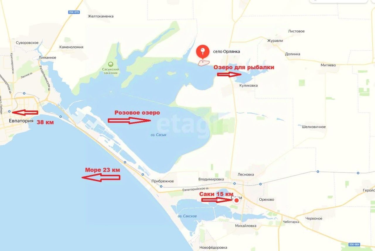 В 10 км озера Сасык-Сиваш самое большое по площади озеро на Крымском полуострове. Озеро является лечебным. Оно знаменито своей солью и грязью, с лечебными свойствами. В 50 м от дома еще одно озеро-Лиман пресноводное,где можно порыбачить и покупаться.