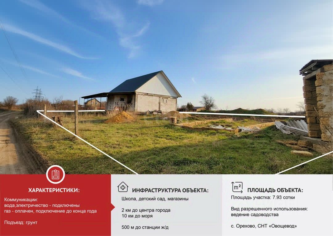 Коммуникации на участок уже подведены: есть электричество и вода, а также оплачен первый взнос за газ, подключение которого планируется в обозримой перспективе.