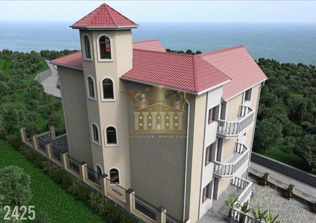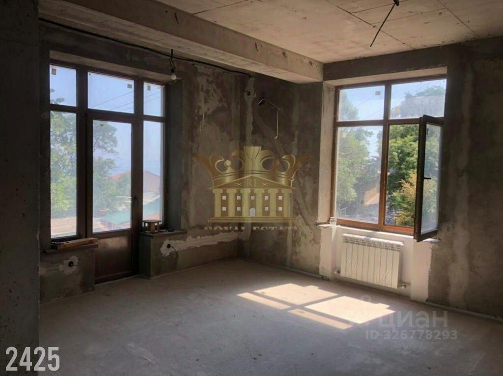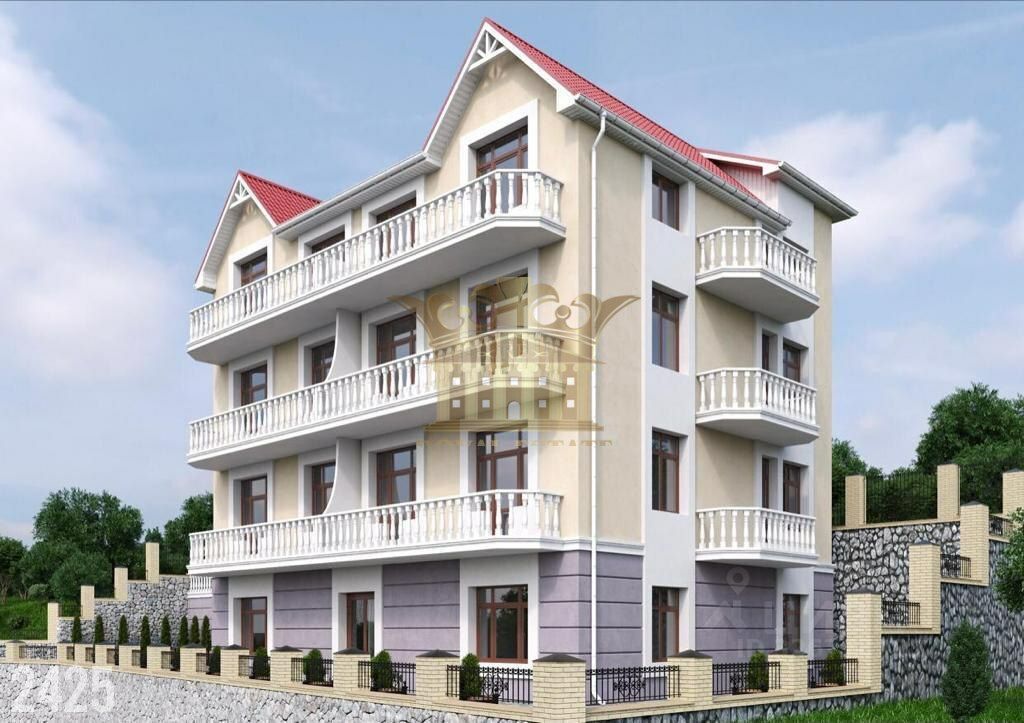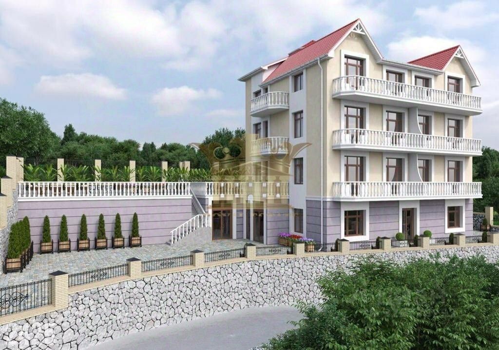 Здание строилось под гостиницу, общая площадь дома- 703 м2, (жилая - 573 м2+130 м2 лоджии), четыре этажа + чердак. Материал стен - монолит, утеплен ракушечными блоками, полностью оштукатурен внутри и снаружи, вместе с откосами. Фундамент - сейсмическая плита. Высота потолка на первых трех этажах 3,20 м, на четвертом этаже - 4,30 м. Имеются балконы и лоджии, а так же круговые смотровые площадки на крыше. Окна пластиковые, цвет- мореный дуб. Установлены подоконники, отливы. Электричество 3 фазы, 40 кВт, (заведено), есть возможность дальнейшего увеличения. Водопровод (горячая, холодная вода) и канализация - центральные. Оборудованная котельная, установлен электрический котел Wiessmann. Подогреваемые полы, алюминиевые радиаторы отопления, производства Италии. Газ есть, не подведен. Ремонт- черновая.