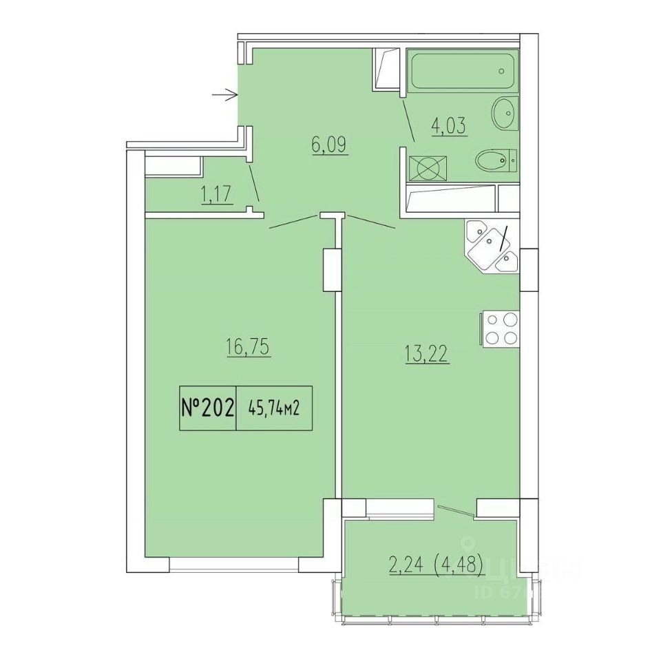 Общая площадь43,5 м2