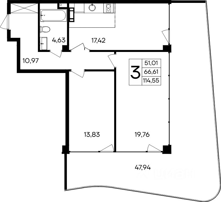 Общая площадь114,55 м2