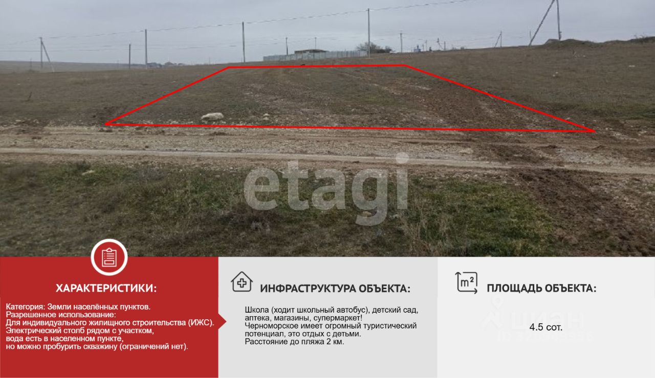 Пpoдaется земельный участок площадью 4,5 соток на территории пгт. Черноморское Черноморского района.
