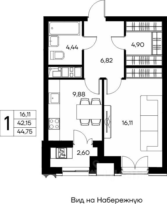 Продаётся 1-комнатная квартира в строящемся доме (Столица), срок сдачи: II-кв. 2029, общей площадью 44.75 кв.м., на 12 этаже. Новый клубный дом ''Столица'' от застройщика ''ИнтерСтрой'' расположен по адресу: Республика Крым, Симферополь, улица Набережная имени 60-летия СССР, 28А
