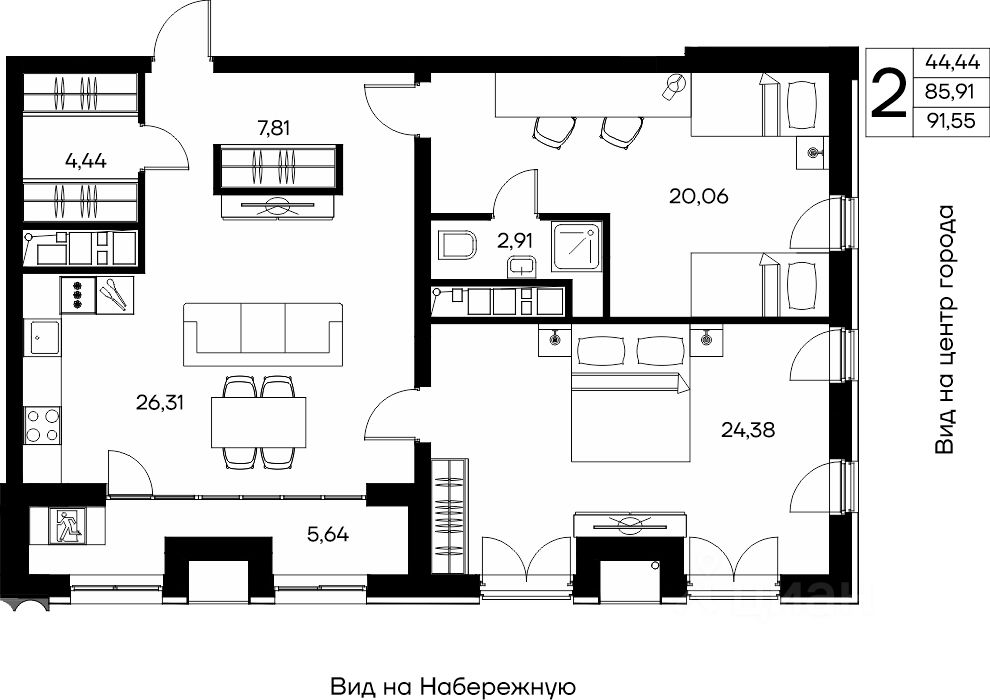 Продаётся 2-комнатная квартира в строящемся доме (Столица), срок сдачи: II-кв. 2029, общей площадью 91.55 кв.м., на 14 этаже. Новый клубный дом ''Столица'' от застройщика ''ИнтерСтрой'' расположен по адресу: Республика Крым, Симферополь, улица Набережная имени 60-летия СССР, 28А