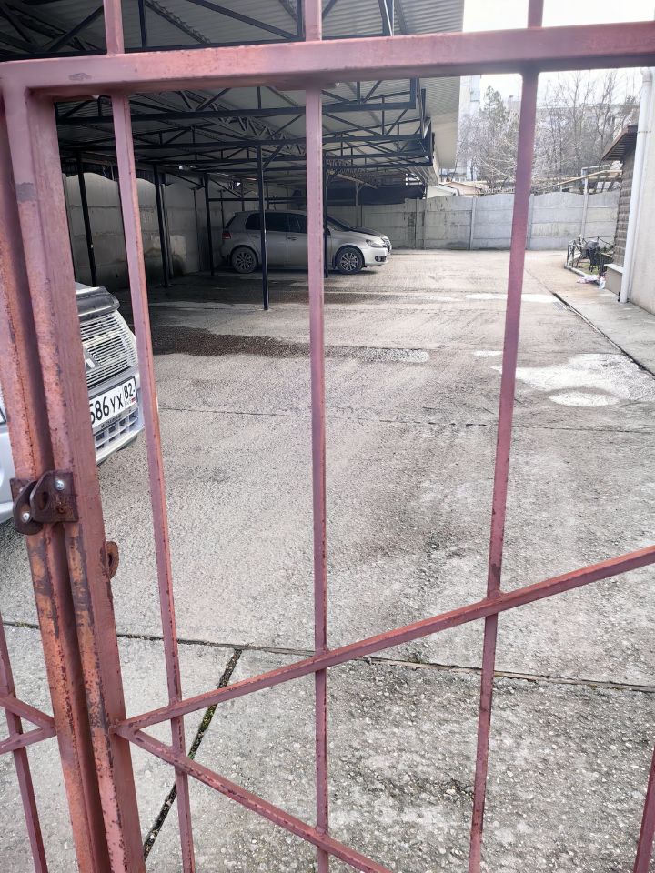 Закрытый паркинг во внутреннем дворе дома. Навес, пультовые ворота.