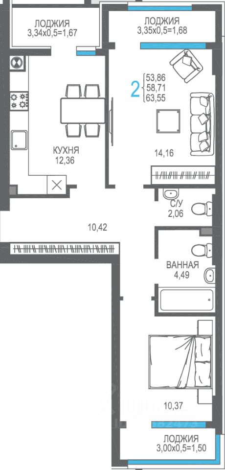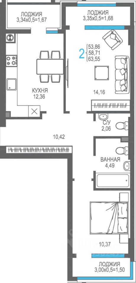 Продаётся 2-комнатная квартира в строящемся доме (Корпус 1), срок сдачи: I-кв. 2026, общей площадью 58.71 кв.м., на 7 этаже. Жилой комплекс ''На Фонтанке'' в городе Алушта на улице Багликова.