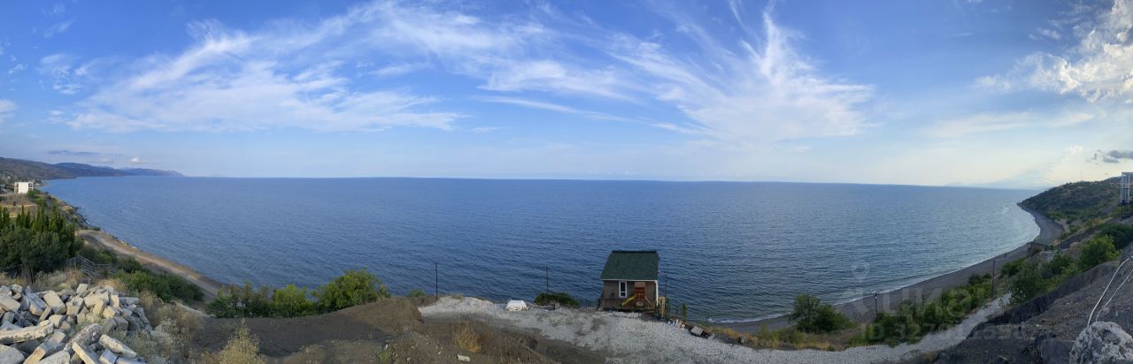 Участок 5 соток в шикарном месте с прекрасным панорамным видом на море от мыса Меганом до горы Аю-Даг. Огромная бухта. До моря 70 м. Вид не перекроется никогда. Участок выровнен для застройки на 70%. На участке централизованная вода и столб с электричеством, ожидается газ. Возможна покупка смежного участка 5 соток.