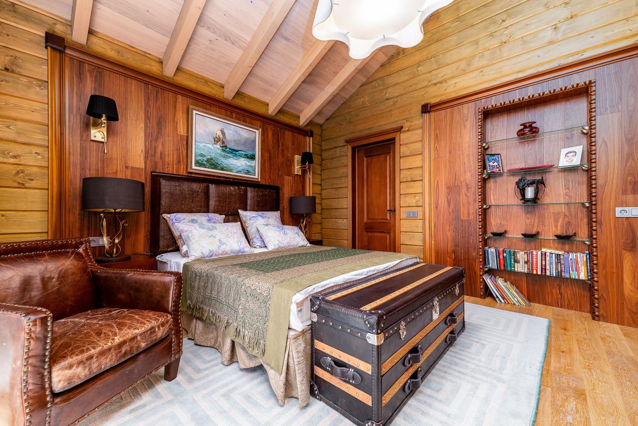 Гостевой дом, хоть и меньшей площади, не уступает центральному в уровне комфорта и продуманности. Он идеально подходит для размещения родственников или друзей, приезжающих на длительный срок, обеспечивая им полную приватность и все необходимые удобства. Каждая комната в гостевом доме оформлена с индивидуальным подходом, создавая уютную и теплую атмосферу. Наличие собственной мини-кухни и ванной комнаты делает его полностью автономным и самодостаточным.