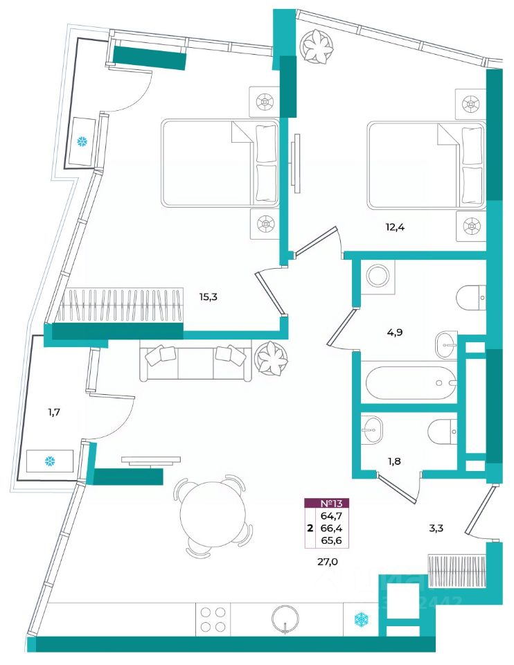 Общая площадь65,6 м2
