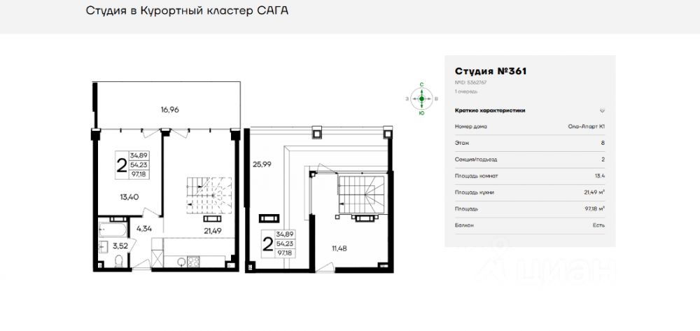 Стоимость указана при 100% оплате и ипотеке. Курортный кластер ''САГА'' в Прибрежное, Крым.