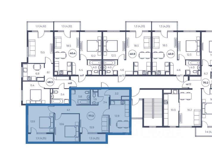 Общая площадь77,3 м2