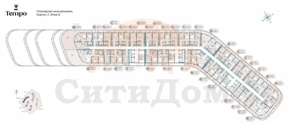 В строящемся кластере на первой береговой линии Tempo продаются отличные апартаменты с видом во двор, которые состоят из кухни-гостиной 19,5 м2, комнаты 15,6 м2, санузла 4,1 м2, гардеробной 3,6 м2 и балкона 9,53 м2. Общая площадь с балконом 52,33 м2.