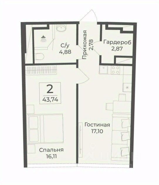Общая площадь43,7 м2