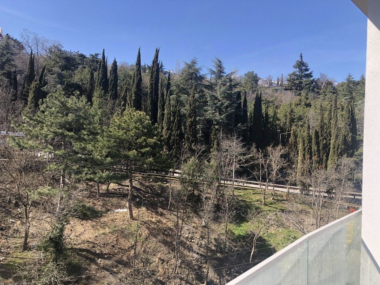 Море. Прямо перед вами — бескрайняя синева Чёрного моря. Вы видите его не где-то между крыш, а во всей красе — от линии прибоя до горизонта. Горы. Справа открываются величественные Крымские яйлы — те самые легендарные вершины, которые придают ялтинскому пейзажу объём и величие. Парк. Внизу — океан зелени. Кроны вековых деревьев, пальмы и кипарисы создают ощущение, что вы живёте в дендрарии. Воздух здесь настолько чистый и целебный, что его сравнивают с лучшими курортами мира .