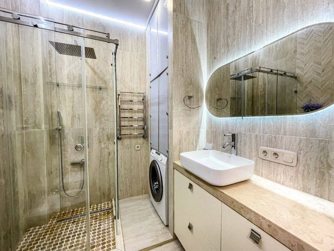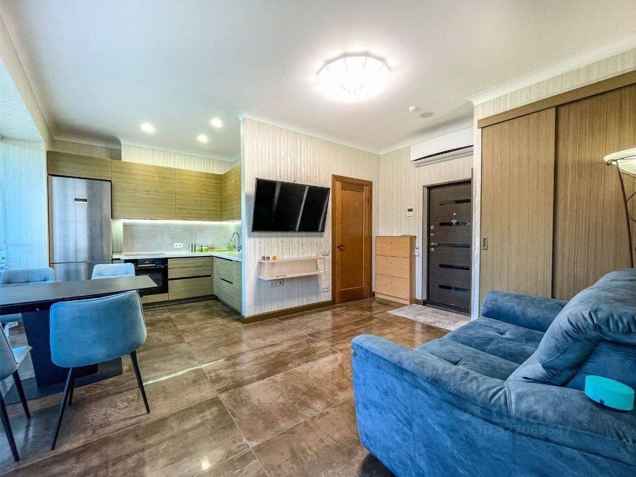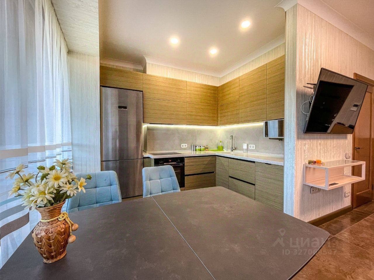Интерьер под ключ (90 м²) Квартира полностью готова к проживанию. Здесь выполнен дизайнерский ремонт в современном стиле, который не перегружает пространство, а лишь подчеркивает главное — виды за окном . Продуманная планировка, качественная отделка, встроенная техника и мебель — вы завозите только личные чемоданы. Всё продумано для вашего комфорта: от посудомоечной машины до уютных тёплых тонов в отделке .