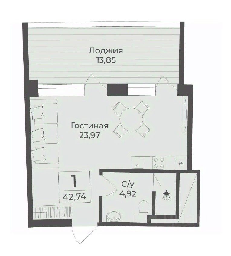 Общая площадь42,7 м2