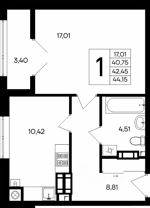 Общая площадь44,15 м2