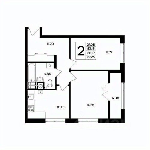 Общая площадь57,23 м2