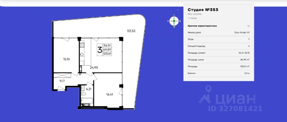 Общая площадь123 м2